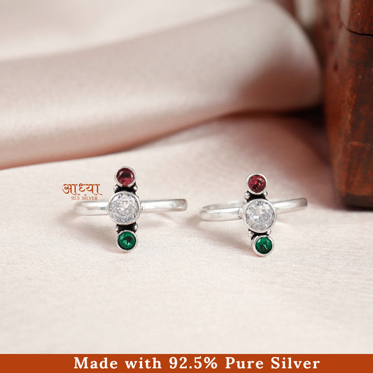 Jewel Tone Cubic Zirconia Silver Toe Ring
