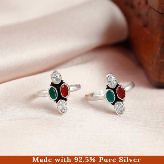 Multicolor Festive Silver Toe Ring